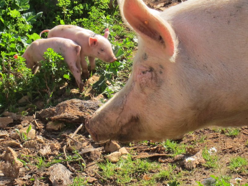 Tilfreds nabogris med grislinger, syv i alt